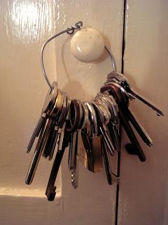 いろんな鍵がぎっしりあって,真ん中に南京錠ってゆ-ね。
